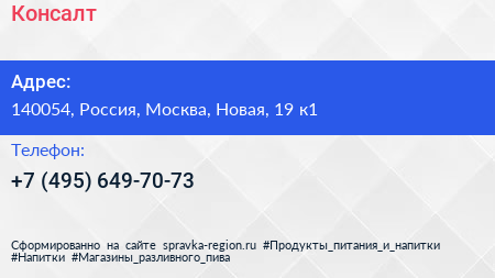 Консалт по адресу 140054, Россия, Москва, Новая, 19 к1 в дальнейшем Организация, размещена в следующих категориях: