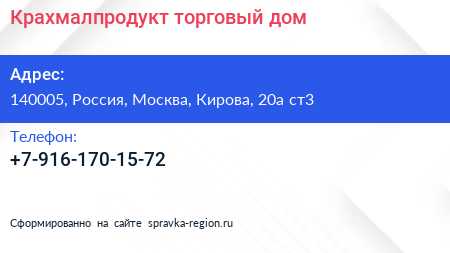 Крахмалпродукт, торговый дом по адресу 140005, Россия, Москва, Кирова, 20а ст3 в дальнейшем Организация, размещена в следующих категориях: