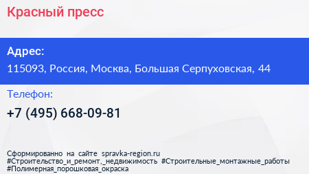 Красный пресс по адресу 115093, Россия, Москва, Большая Серпуховская, 44 в дальнейшем Организация, размещена в следующих категориях: