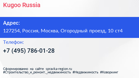 Kugoo-Russia по адресу 127254, Россия, Москва, Огородный проезд, 10 ст4 в дальнейшем Организация, размещена в следующих категориях: