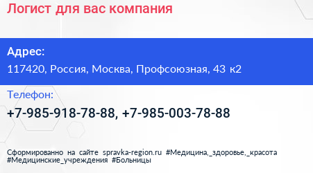 Для связи с организацией воспользуйтесь номером телефона: +7-985-918-78-88, +7-985-003-78-88. Пн: c 09:00-18:00, Вт: c 09:00-18:00, Ср: c 09:00-18:00, Чт: c 09:00-18:00, Пт: c 09:00-18:00, Сб: выходной, Вс: выходной, вы можете обратиться в эту организацию.