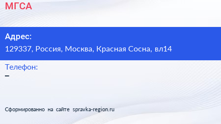 МГСА по адресу 129337, Россия, Москва, Красная Сосна, вл14 в дальнейшем Организация, размещена в следующих категориях: