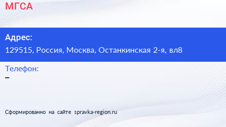 МГСА по адресу 129515, Россия, Москва, Останкинская 2-я, вл8 в дальнейшем Организация, размещена в следующих категориях: