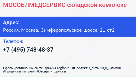 МОСОБЛМЕДСЕРВИС, складской комплекс по адресу Россия, Москва, Симферопольское шоссе, 21 ст2 в дальнейшем Организация, размещена в следующих категориях: