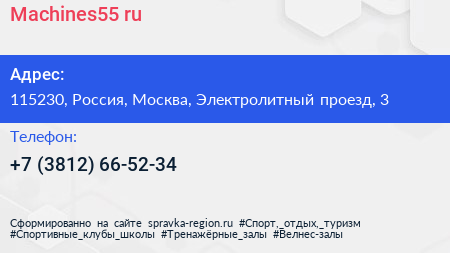Machines55.ru по адресу 115230, Россия, Москва, Электролитный проезд, 3 в дальнейшем Организация, размещена в следующих категориях: