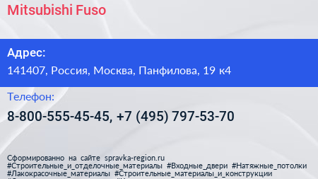 Mitsubishi Fuso по адресу 141407, Россия, Москва, Панфилова, 19 к4 в дальнейшем Организация, размещена в следующих категориях: