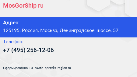 MosGorShip.ru по адресу 125195, Россия, Москва, Ленинградское шоссе, 57 в дальнейшем Организация, размещена в следующих категориях: