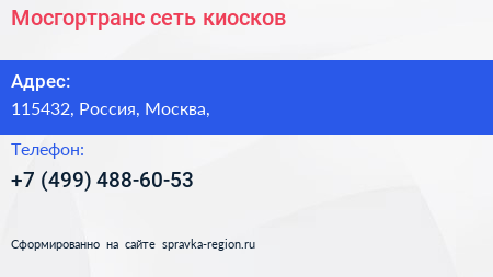 Мосгортранс, сеть киосков по адресу 115432, Россия, Москва, в дальнейшем Организация, размещена в следующих категориях: