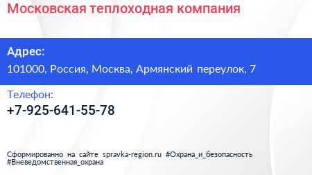 Московская теплоходная компания по адресу 101000, Россия, Москва, Армянский переулок, 7 в дальнейшем Организация, размещена в следующих категориях: