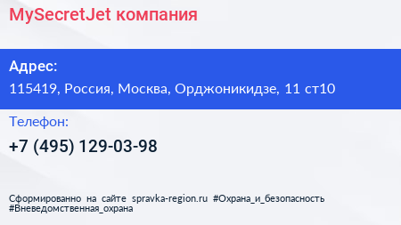 MySecretJet, компания по адресу 115419, Россия, Москва, Орджоникидзе, 11 ст10 в дальнейшем Организация, размещена в следующих категориях: