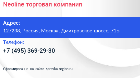 Neoline, торговая компания по адресу 127238, Россия, Москва, Дмитровское шоссе, 71Б в дальнейшем Организация, размещена в следующих категориях: