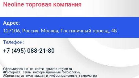 Neoline, торговая компания по адресу 127106, Россия, Москва, Гостиничный проезд, 4Б в дальнейшем Организация, размещена в следующих категориях: