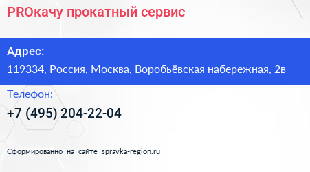 PROкачу, прокатный сервис по адресу 119334, Россия, Москва, Воробьёвская набережная, 2в в дальнейшем Организация, размещена в следующих категориях: