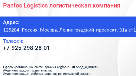 Pantos Logistics, логистическая компания по адресу 125284, Россия, Москва, Ленинградский проспект, 31а ст1 в дальнейшем Организация, размещена в следующих категориях:
