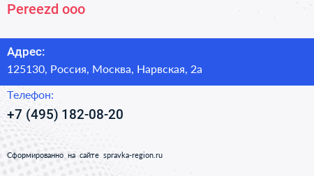 Pereezd.ooo по адресу 125130, Россия, Москва, Нарвская, 2а в дальнейшем Организация, размещена в следующих категориях: