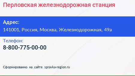 Перловская, железнодорожная станция по адресу 141001, Россия, Москва, Железнодорожная, 49а в дальнейшем Организация, размещена в следующих категориях: