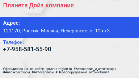 Планета-Дойз, компания по адресу 121170, Россия, Москва, Неверовского, 10 ст3 в дальнейшем Организация, размещена в следующих категориях: