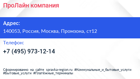 ПроЛайн, компания по адресу 140053, Россия, Москва, Промзона, ст12 в дальнейшем Организация, размещена в следующих категориях: