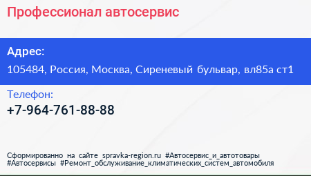 Профессионал, автосервис по адресу 105484, Россия, Москва, Сиреневый бульвар, вл85а ст1 в дальнейшем Организация, размещена в следующих категориях: