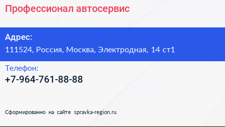 Профессионал, автосервис по адресу 111524, Россия, Москва, Электродная, 14 ст1 в дальнейшем Организация, размещена в следующих категориях: