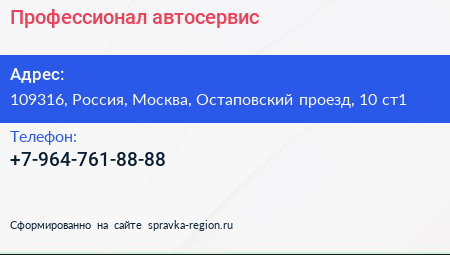 Профессионал, автосервис по адресу 109316, Россия, Москва, Остаповский проезд, 10 ст1 в дальнейшем Организация, размещена в следующих категориях: