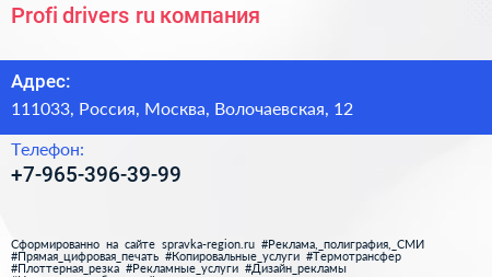 Profi-drivers.ru, компания по адресу 111033, Россия, Москва, Волочаевская, 12 в дальнейшем Организация, размещена в следующих категориях: