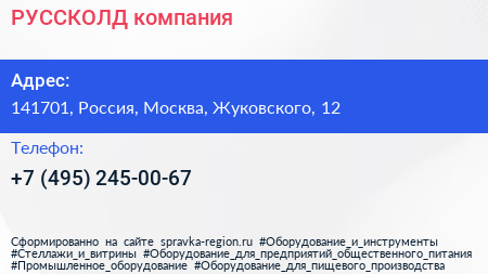 РУССКОЛД, компания по адресу 141701, Россия, Москва, Жуковского, 12 в дальнейшем Организация, размещена в следующих категориях: