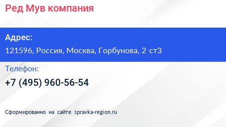 Ред Мув, компания по адресу 121596, Россия, Москва, Горбунова, 2 ст3 в дальнейшем Организация, размещена в следующих категориях: