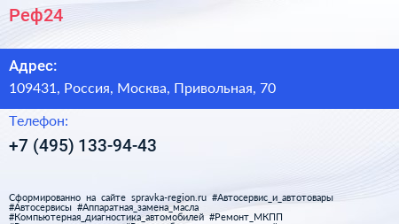 Реф24 по адресу 109431, Россия, Москва, Привольная, 70 в дальнейшем Организация, размещена в следующих категориях: