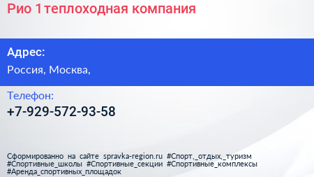 Рио-1, теплоходная компания по адресу Россия, Москва, в дальнейшем Организация, размещена в следующих категориях: