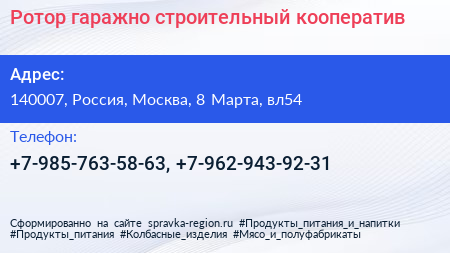 Ротор, гаражно-строительный кооператив по адресу 140007, Россия, Москва, 8 Марта, вл54 в дальнейшем Организация, размещена в следующих категориях: