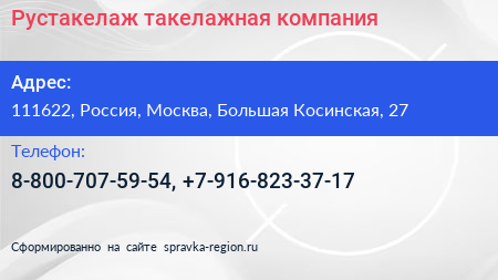 Рустакелаж, такелажная компания по адресу 111622, Россия, Москва, Большая Косинская, 27 в дальнейшем Организация, размещена в следующих категориях: