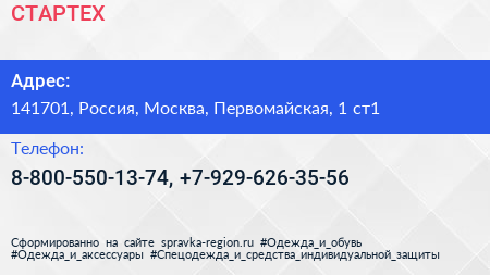 СТАРТЕХ по адресу 141701, Россия, Москва, Первомайская, 1 ст1 в дальнейшем Организация, размещена в следующих категориях: