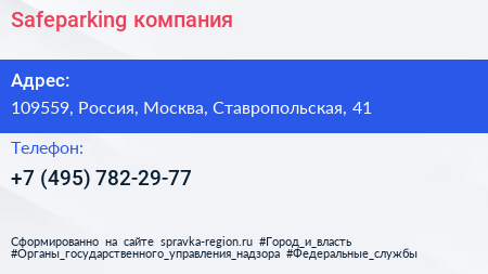 Safeparking, компания по адресу 109559, Россия, Москва, Ставропольская, 41 в дальнейшем Организация, размещена в следующих категориях: