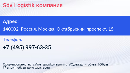 Sdv Logistik, компания по адресу 140002, Россия, Москва, Октябрьский проспект, 15 в дальнейшем Организация, размещена в следующих категориях: