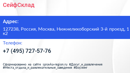 СейфСклад по адресу 127238, Россия, Москва, Нижнелихоборский 3-й проезд, 1 к2 в дальнейшем Организация, размещена в следующих категориях: