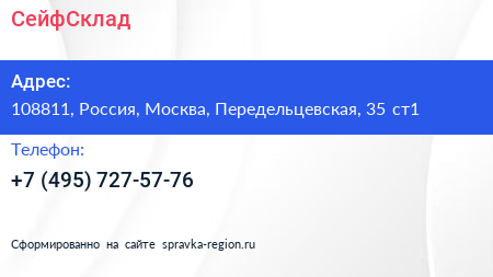 СейфСклад по адресу 108811, Россия, Москва, Передельцевская, 35 ст1 в дальнейшем Организация, размещена в следующих категориях: