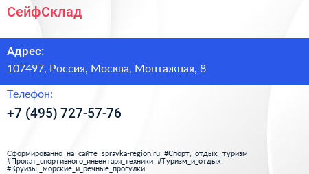 СейфСклад по адресу 107497, Россия, Москва, Монтажная, 8 в дальнейшем Организация, размещена в следующих категориях: