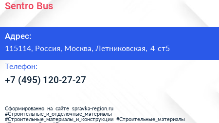 Sentro Bus по адресу 115114, Россия, Москва, Летниковская, 4 ст5 в дальнейшем Организация, размещена в следующих категориях: