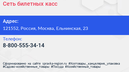 Сеть билетных касс по адресу 121552, Россия, Москва, Ельнинская, 23 в дальнейшем Организация, размещена в следующих категориях: