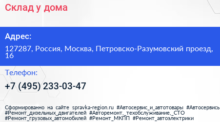 Склад у дома по адресу 127287, Россия, Москва, Петровско-Разумовский проезд, 16 в дальнейшем Организация, размещена в следующих категориях: