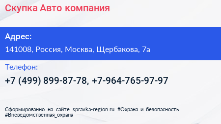 Скупка Авто, компания по адресу 141008, Россия, Москва, Щербакова, 7а в дальнейшем Организация, размещена в следующих категориях: