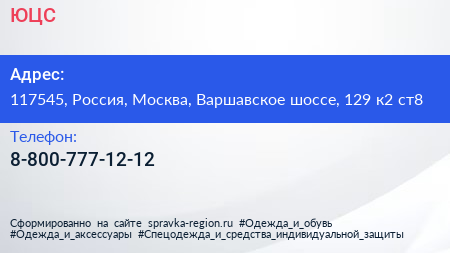 ЮЦС по адресу 117545, Россия, Москва, Варшавское шоссе, 129 к2 ст8 в дальнейшем Организация, размещена в следующих категориях: