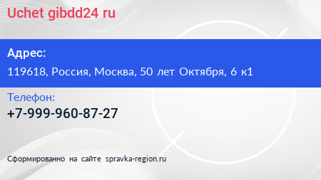 Uchet-gibdd24.ru по адресу 119618, Россия, Москва, 50 лет Октября, 6 к1 в дальнейшем Организация, размещена в следующих категориях: