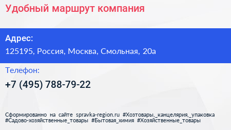 Удобный маршрут, компания по адресу 125195, Россия, Москва, Смольная, 20а в дальнейшем Организация, размещена в следующих категориях: