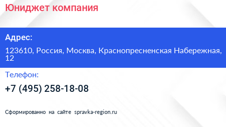Юниджет, компания по адресу 123610, Россия, Москва, Краснопресненская Набережная, 12 в дальнейшем Организация, размещена в следующих категориях: