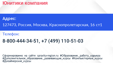 Юнитики, компания по адресу 127473, Россия, Москва, Краснопролетарская, 16 ст1 в дальнейшем Организация, размещена в следующих категориях: