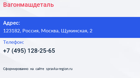 Вагонмашдеталь по адресу 123182, Россия, Москва, Щукинская, 2 в дальнейшем Организация, размещена в следующих категориях: