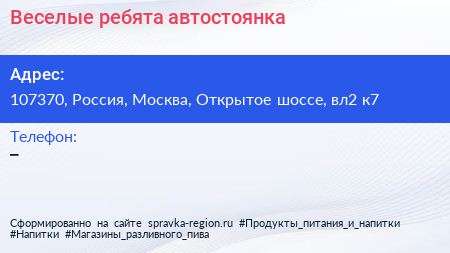 Веселые ребята, автостоянка по адресу 107370, Россия, Москва, Открытое шоссе, вл2 к7 в дальнейшем Организация, размещена в следующих категориях: