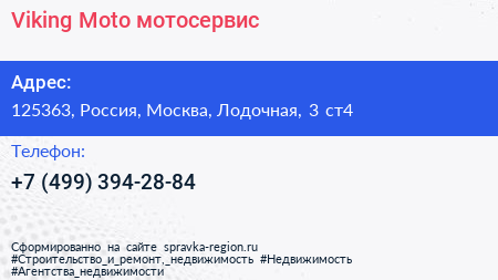 Viking-Moto, мотосервис по адресу 125363, Россия, Москва, Лодочная, 3 ст4 в дальнейшем Организация, размещена в следующих категориях: